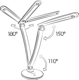 • Дополнительные характеристики поворотный механизм; сенсорное управление; регулятор яркости; антискользящая подставка; подсветка кнопки