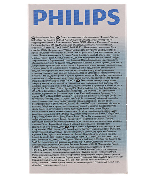 Лампа накаливания Philips 40 Вт Е27 груша прозрачная