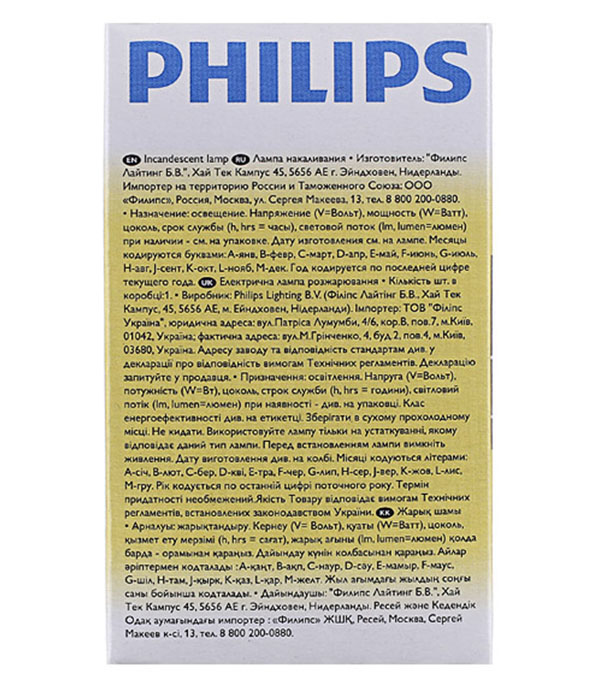 Лампа накаливания Philips 60 Вт Е14 шар матовая