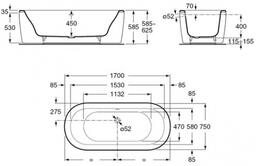 Объем, л Полезный объем ванны. Он не зависит напрямую от габаритов ванны и даже при одинаковых размерах изделий может несколько различаться, поскольку на полезный объем влияют такие факторы, как угол наклона бортов и наличие выемок. Чем больше объем ванны, тем комфортнее в ней находиться, однако на наполнение ванны водой и ее спуск потребуется больше времени. Соответственно увеличивается и расход воды. Объем, л195