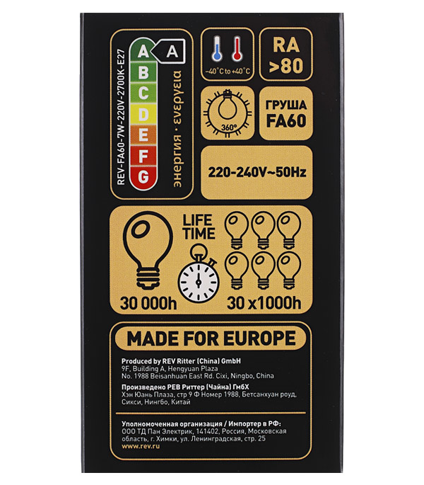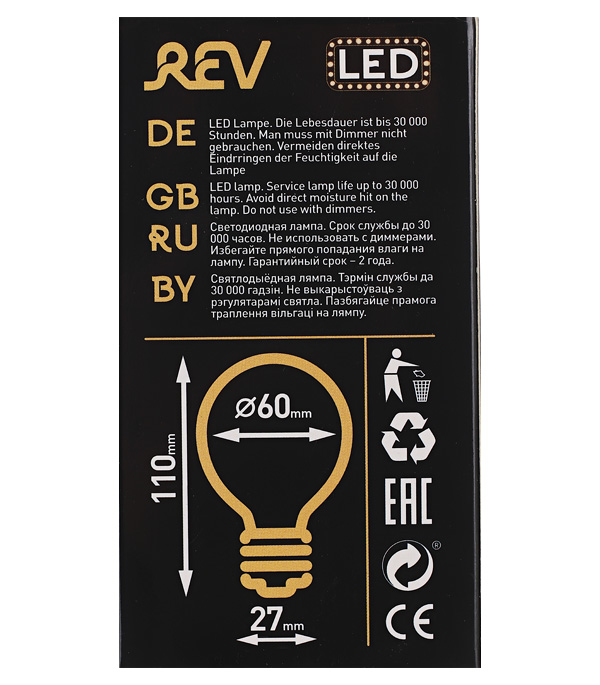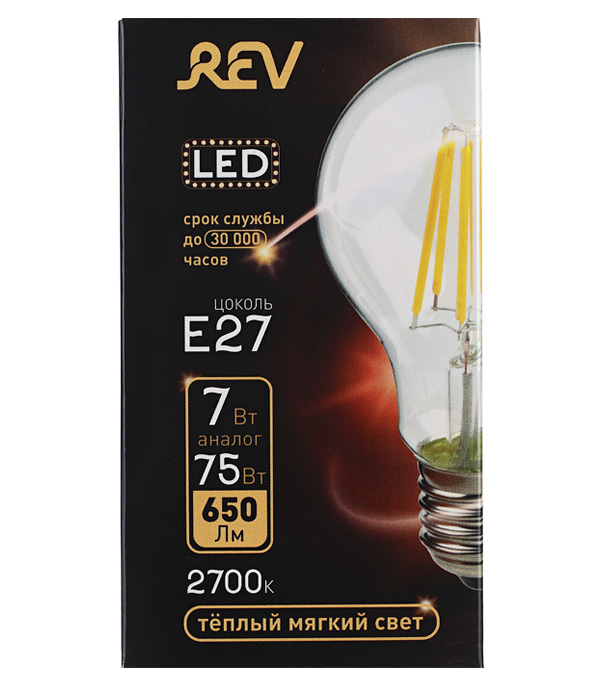 Лампа светодиодная 5 Вт Е14 филаментная груша A60 2700 К теплый свет 230 В