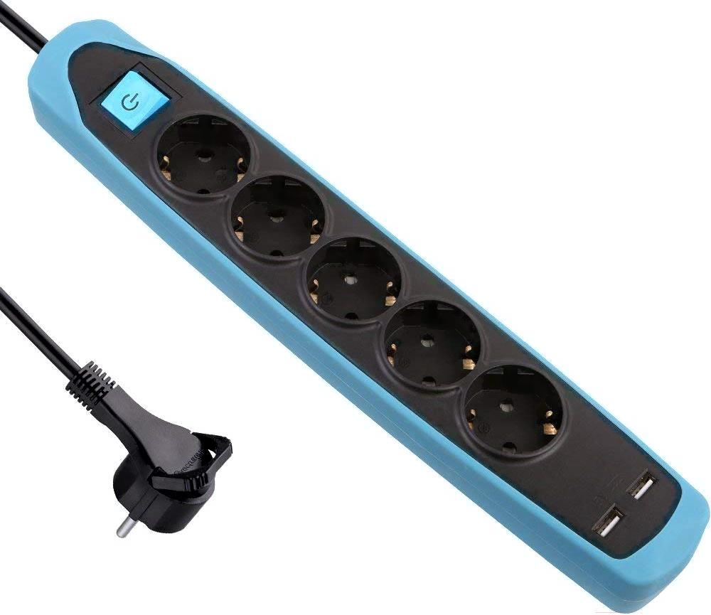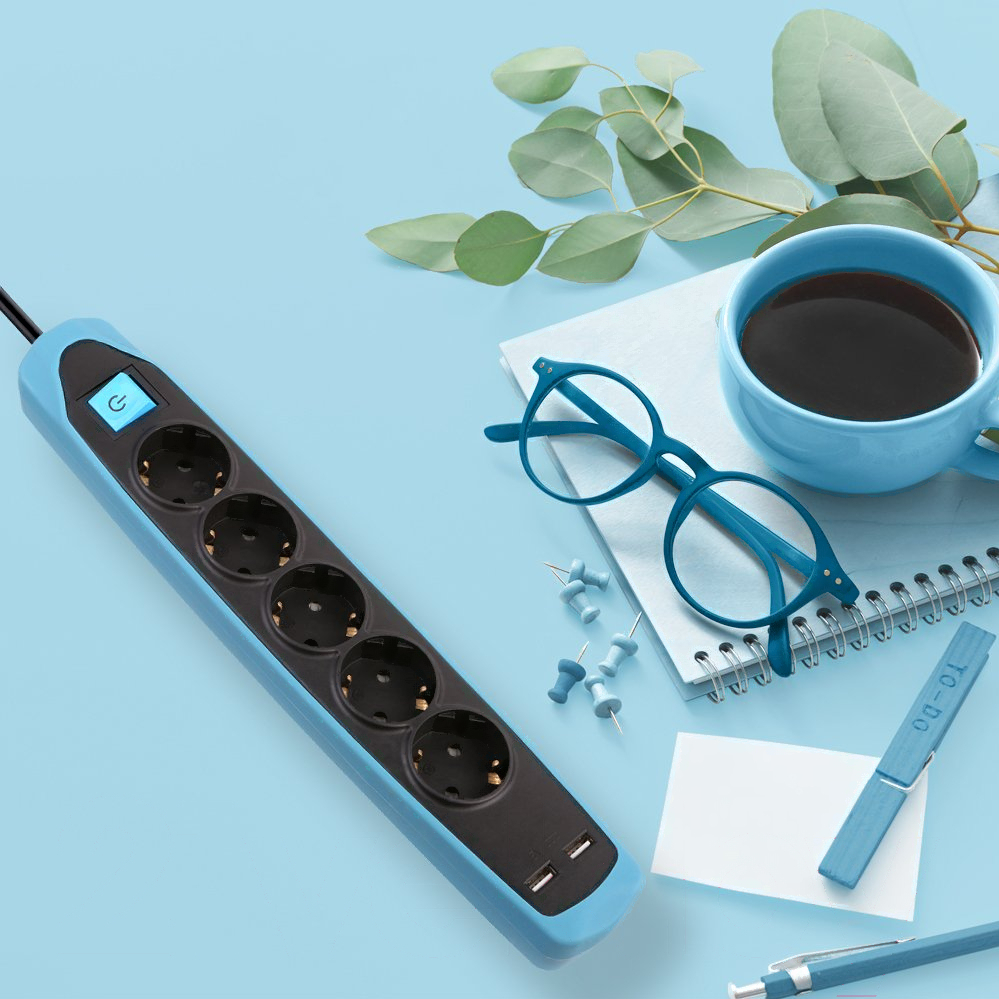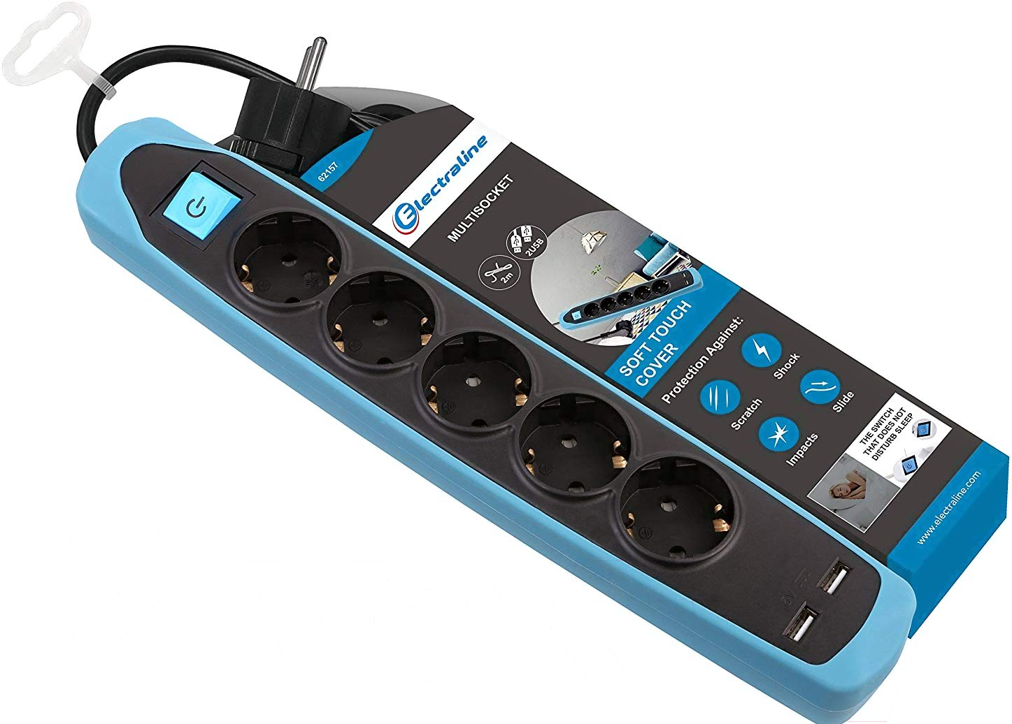 Удлинитель Electraline 62157 (2м, черный/голубой)