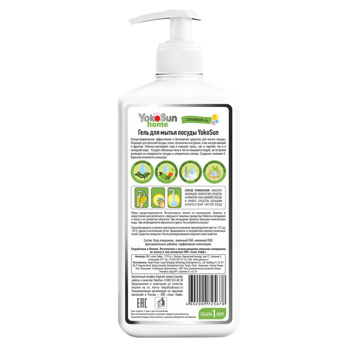 Гель для мытья посуды YokoSun, яблоко, 1л
