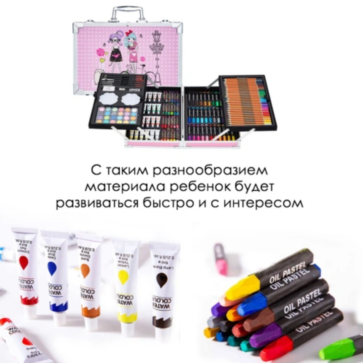 Детский набор для творчества, набор для рисования в чемоданчике, 145 предметов, цвет розовый
