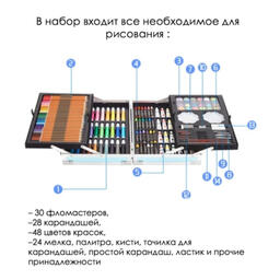 • Состав комплекта Карандаши, Кисть, Набор красок, Фломастеры