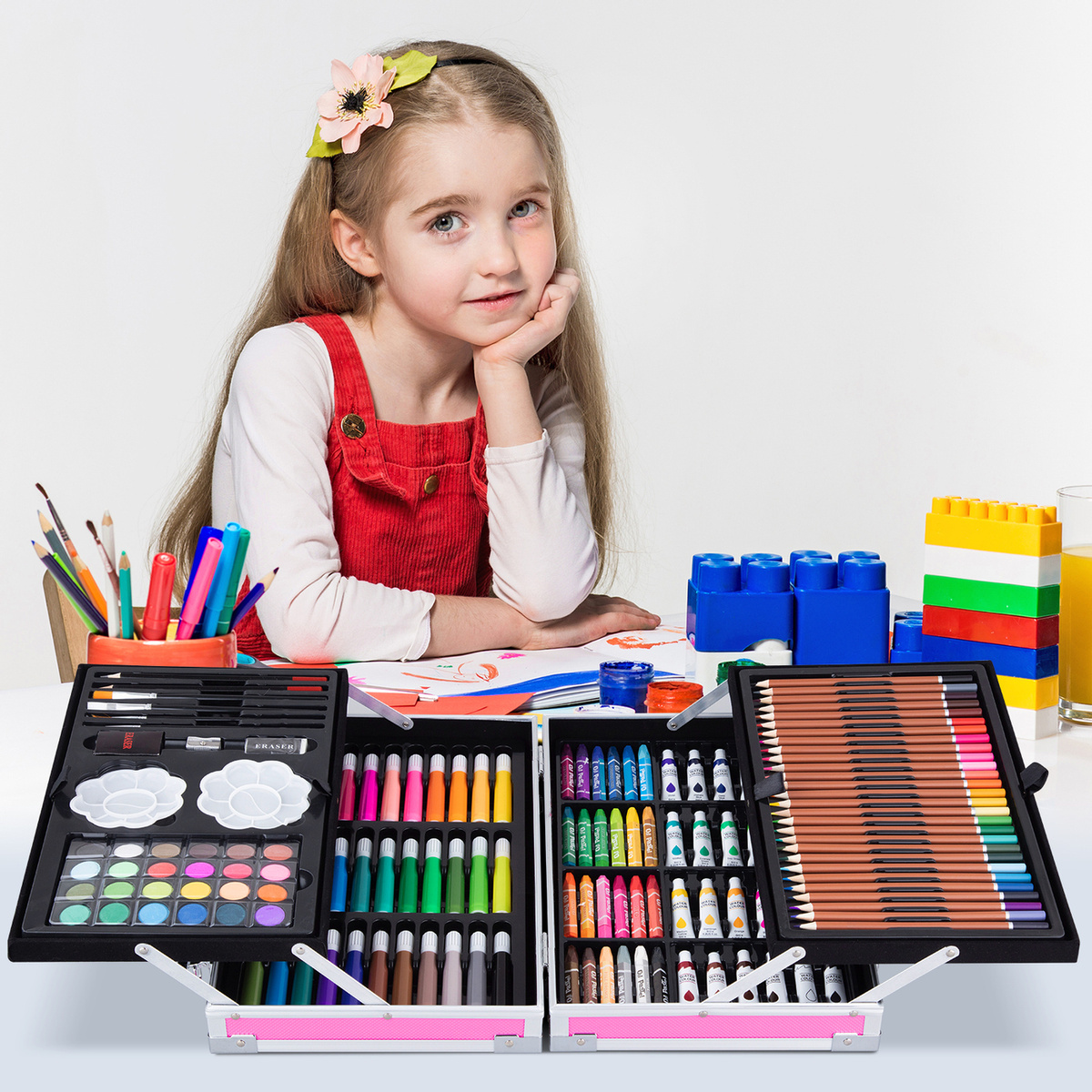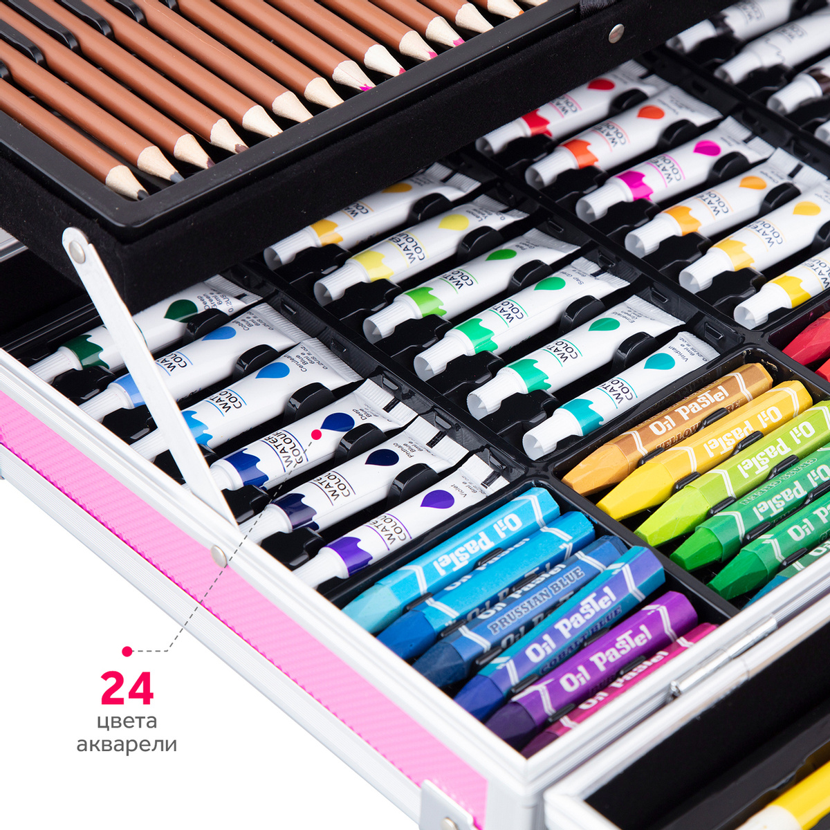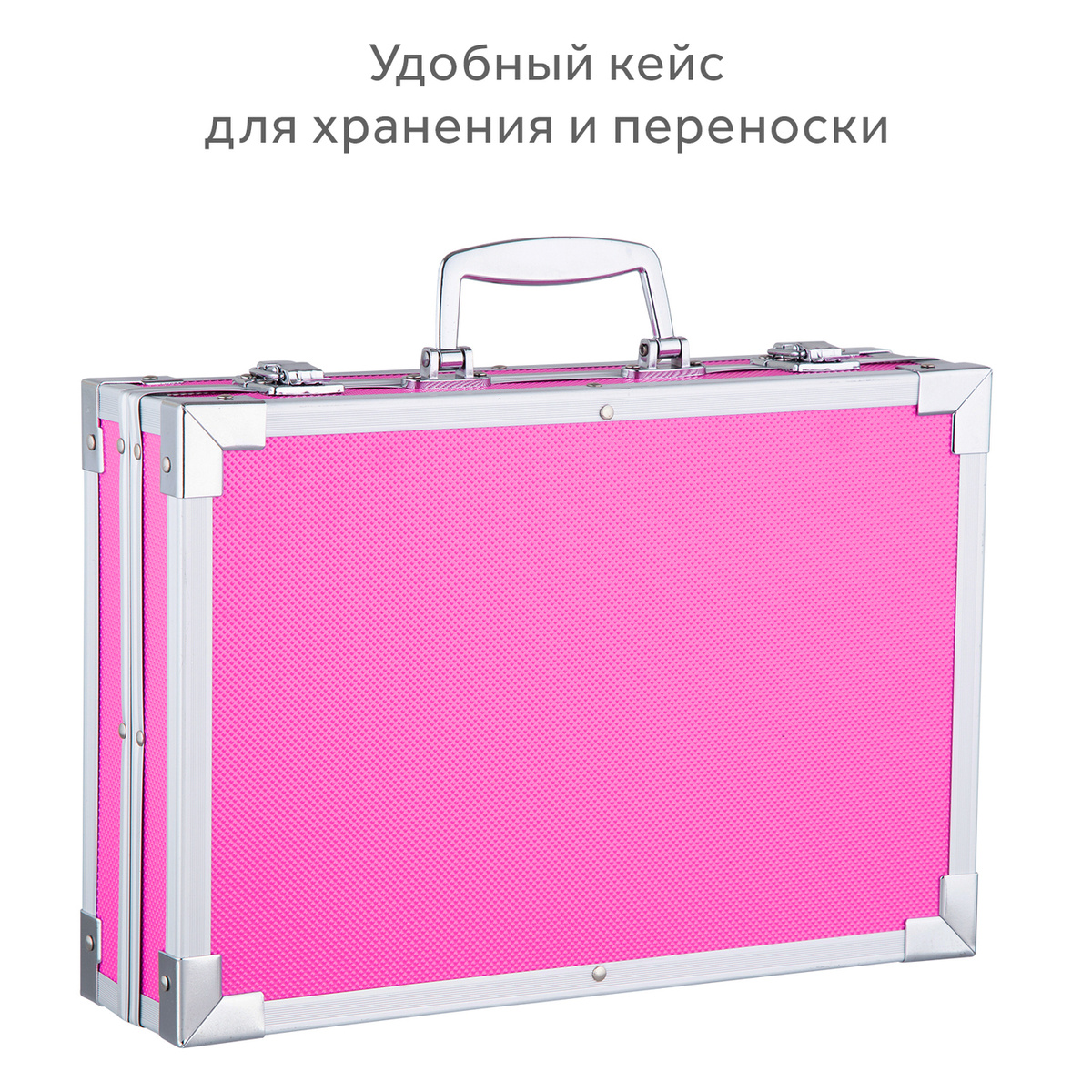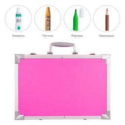 Набор для рисования Goodly "Чемодан творчества" с красками, в алюминиевом чемоданчике, 145 предметов, цвет: розовый