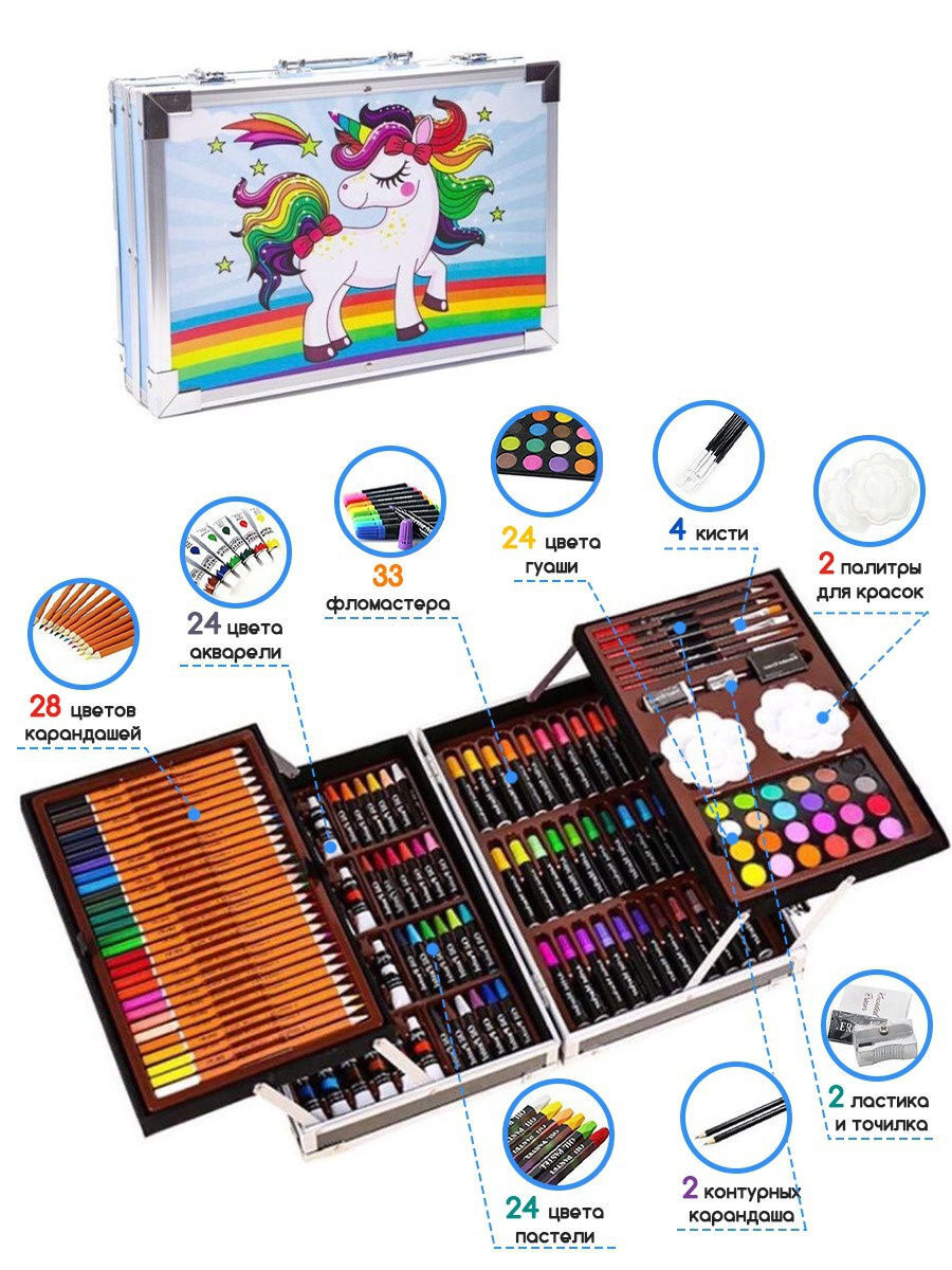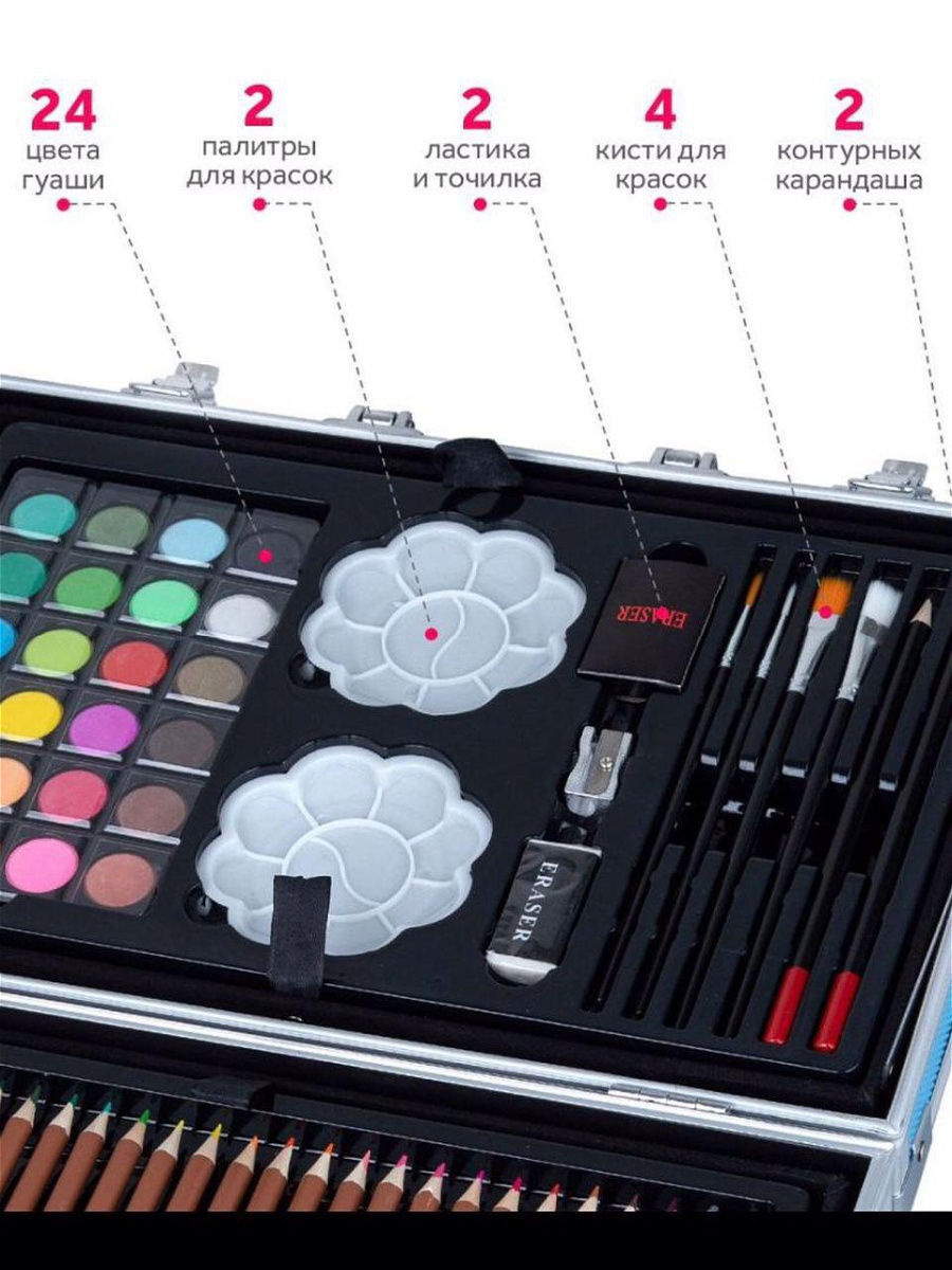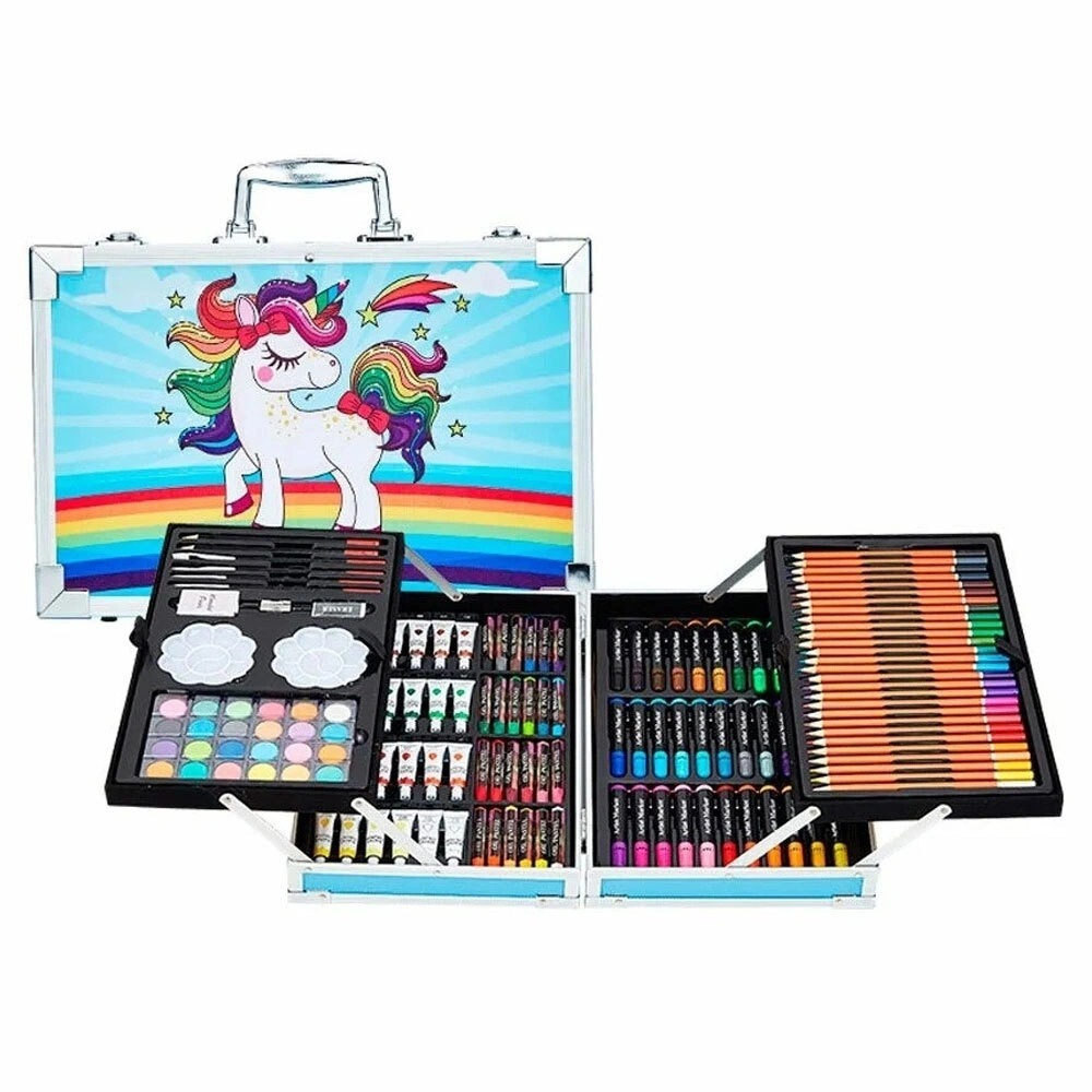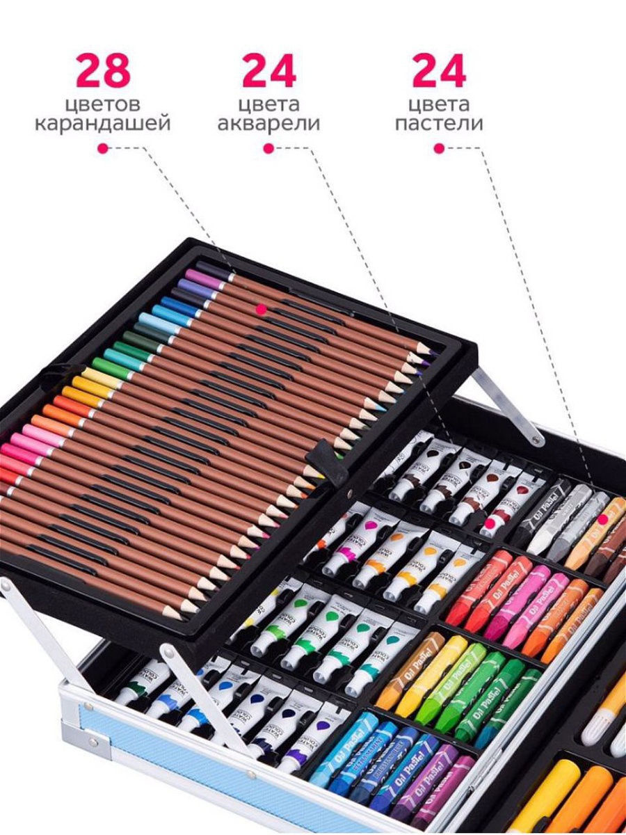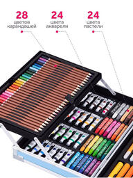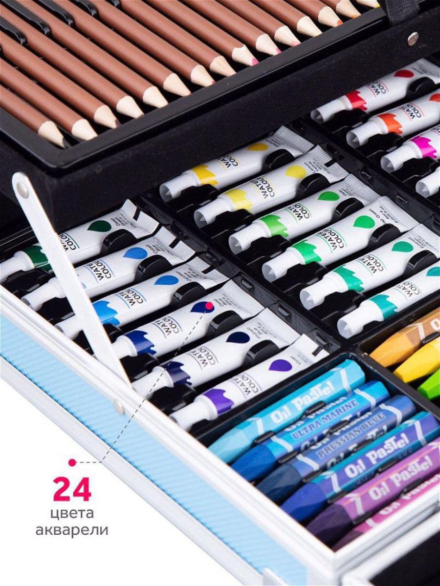 Детский набор художника для творчества в металлическом кейсе, 143 предмета, голубой, 34,5х23х9 см