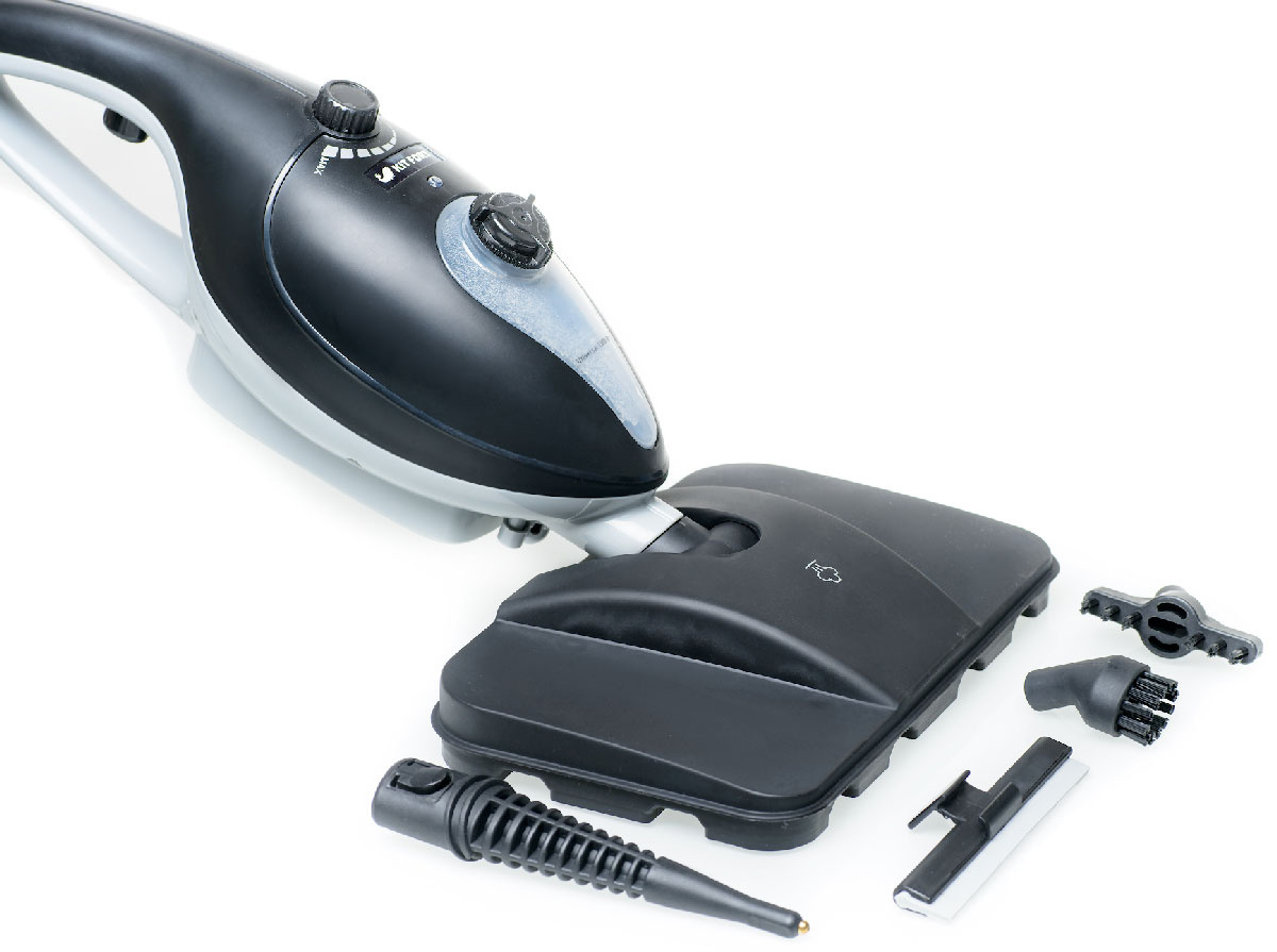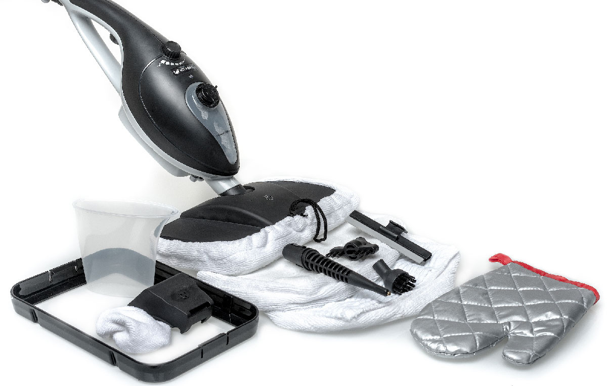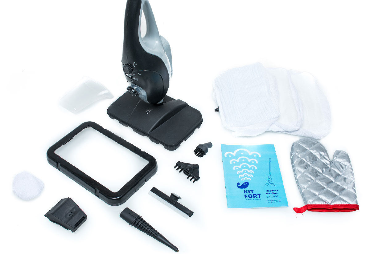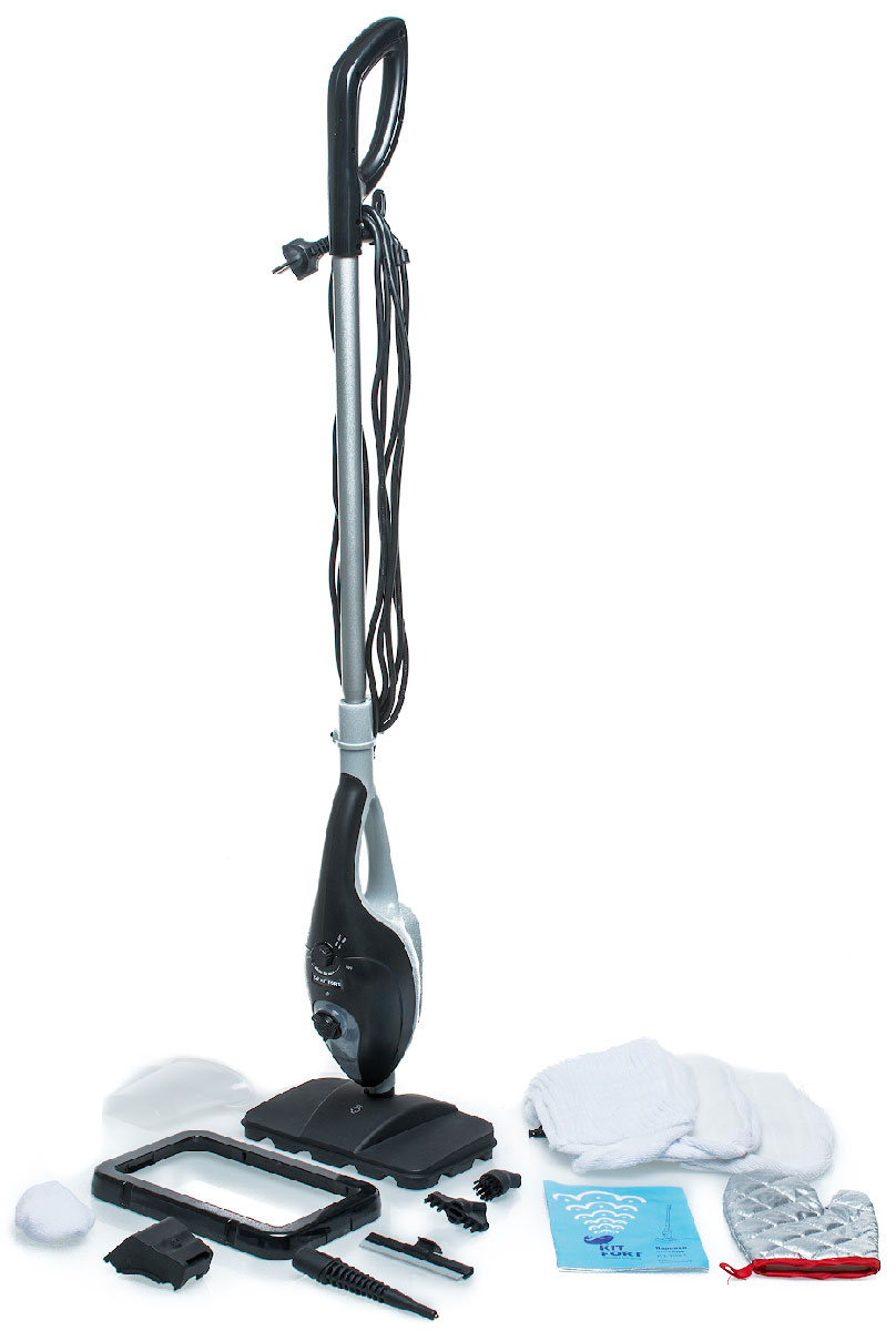 Комплектация:Паровая швабра, удлинительная ручка, щётка для пола, тряпка для пола из микрофибры, тряпка для пола 2 шт, рамка для закрепления тряпки, круглая ворсовая щётка, вертикальная ворсовая щётка, струйная насадка, вспомогательная насадка, скребок для стекла, тряпка для отпаривания, мерный стакан для воды, руководство по эксплуатации