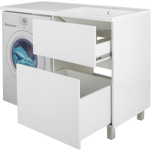 Тумба под стиральную машину напольная «Лайн» 58 см цвет белый