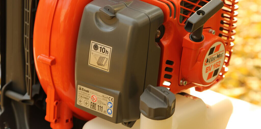 Воздуходувка OLEO-MAC BV162 имеет сбалансированную конструкцию с оптимальным соотношением общей массы (около 9,4кг) и мощности силового привода (4,5 л.с.). Такая корреляция обусловлена наличием производительного двухтактного двигателя с высоким крутящим моментом и эффективной трансмиссии, а также возможна благодаря использованию современных легких и прочных материалов для изготовления комплектующих.