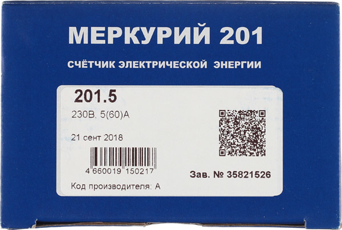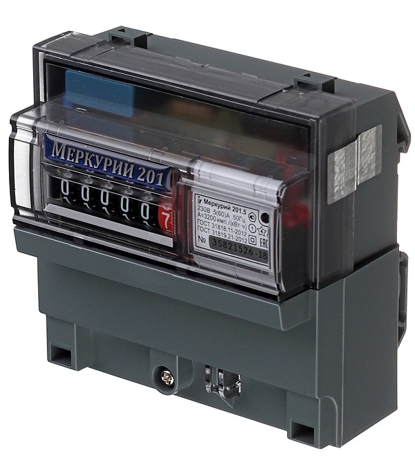 Счетчик Меркурий 1-фазный электронный 1-тарифный на дин-рейку 201.5 5-60А