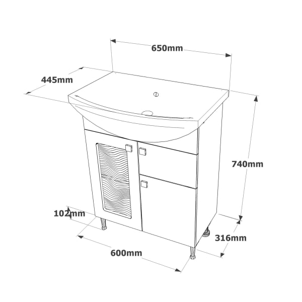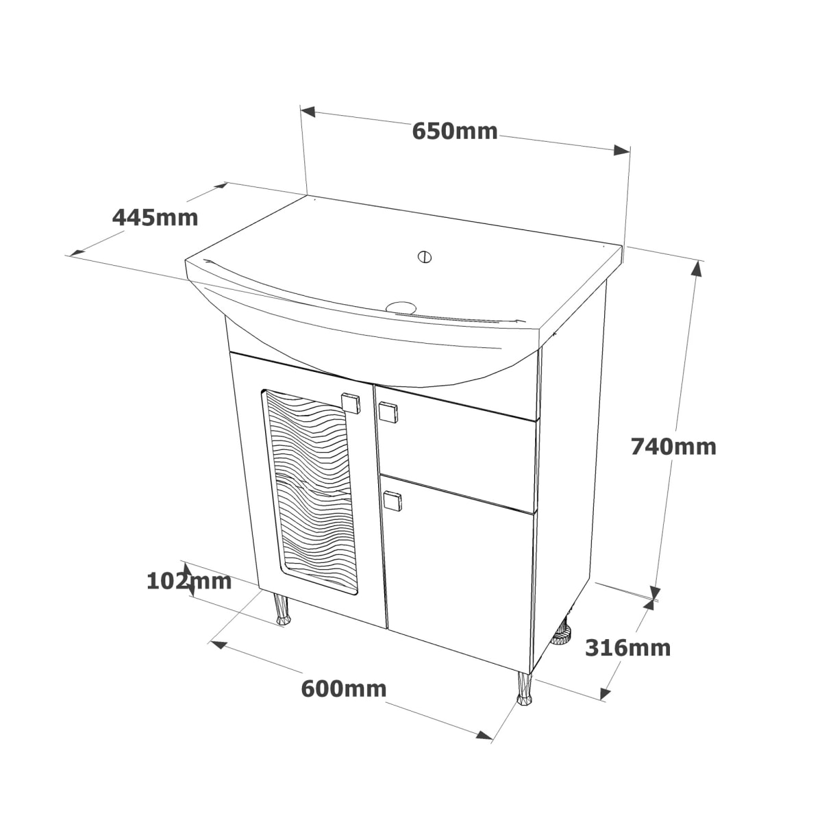 Тумба под раковину напольная «Мальта» 65 см цвет белый