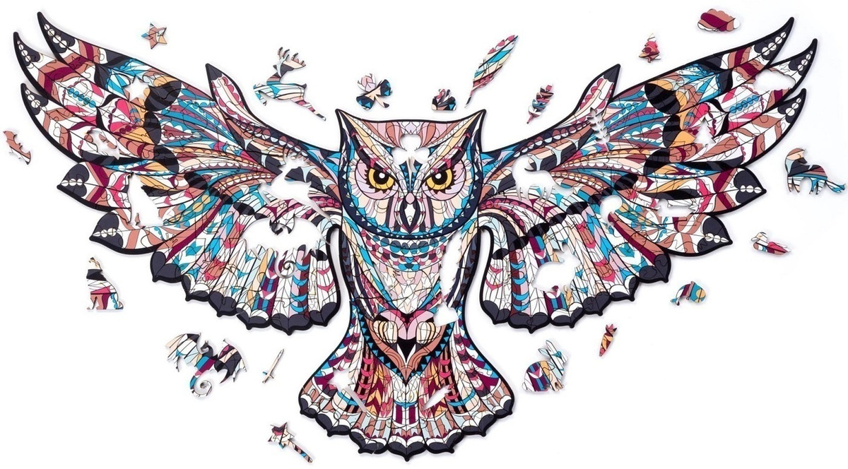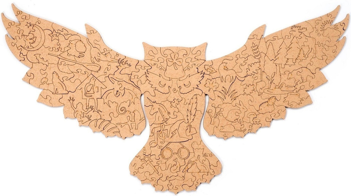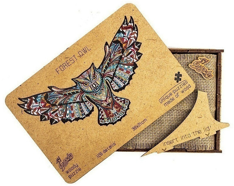 Деревянный пазл Лесная сова, размер S - 38х21см, 126 деталей