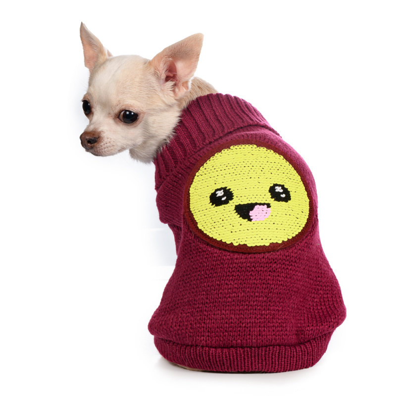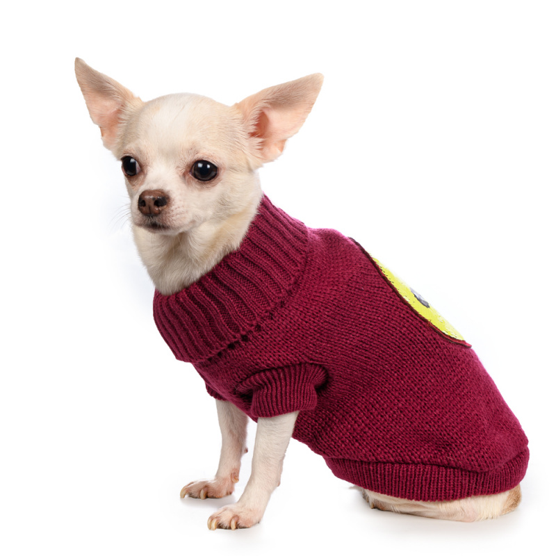 Petmax Свитер бордовый со смайлом пайетки 20см 2XL
