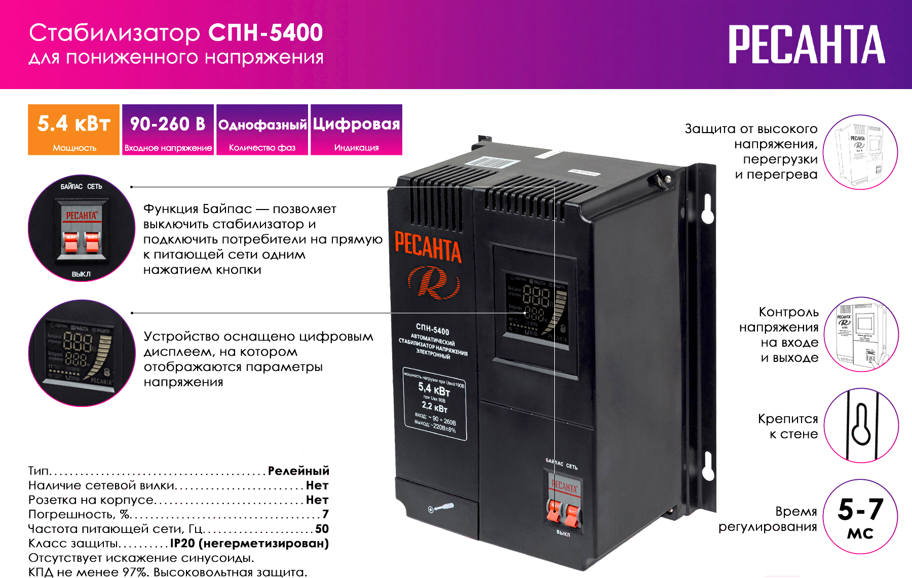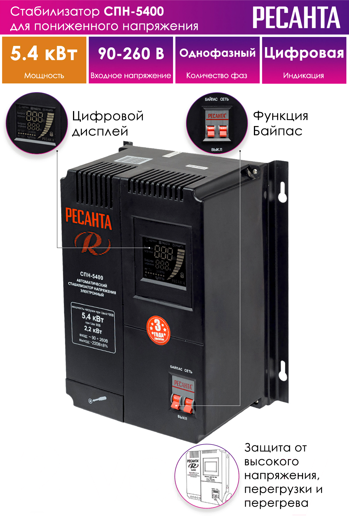 Стабилизатор напряжения Ресанта СПН-5400 (63/6/26)