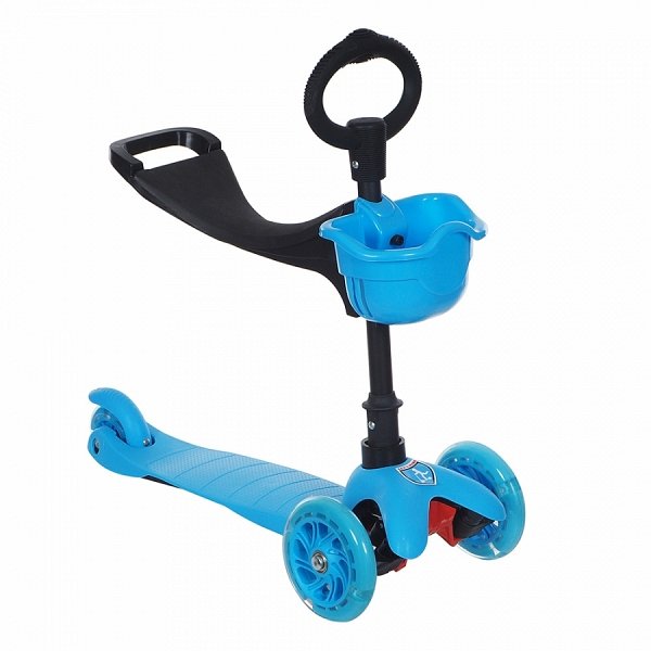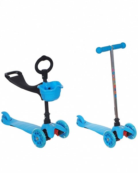 - Описание Самокат 3 в 1 Suncolor Mars kids light голубой станет любимым транспортом для малыша. Он отличается яркой расцветкой и может трансформироваться, меняясь вместе со своим маленьким владельцем. ОСОБЕННОСТИ САМОКАТА: яркий и сочный цвет привлекает внимание в комплект входят 2 ручки руля. Первая сделана из алюминия и имеет T-образную форму, а вторая - круглая удобная пластиковая платформа колеса выполнены из прозрачного полиуретана, внутри которого есть светодиоды, светящиеся при движении предусмотрено сиденье, которое крепится на круглую ручку и превращает самокат в каталку конструкция позволяет использовать самокат в трех вариантах: обычный самокат, самокат с круглой ручкой, каталка с круглой ручкой