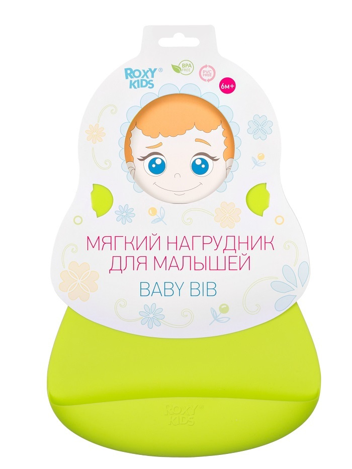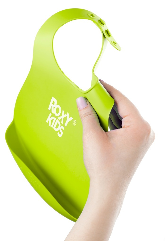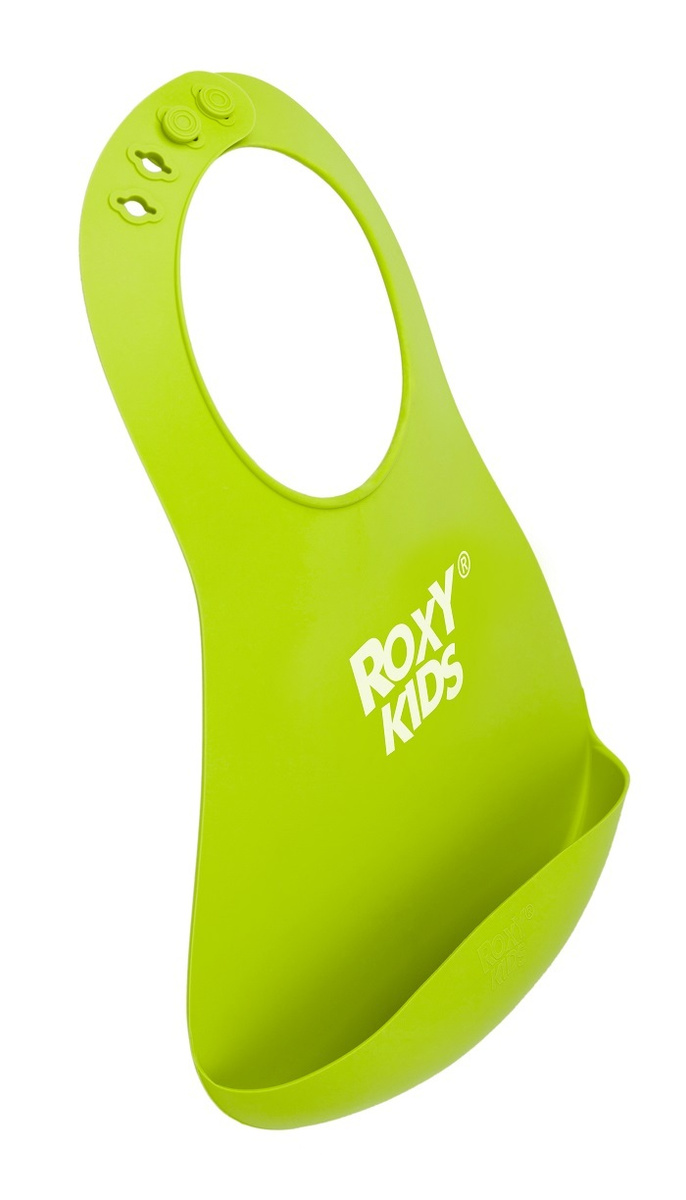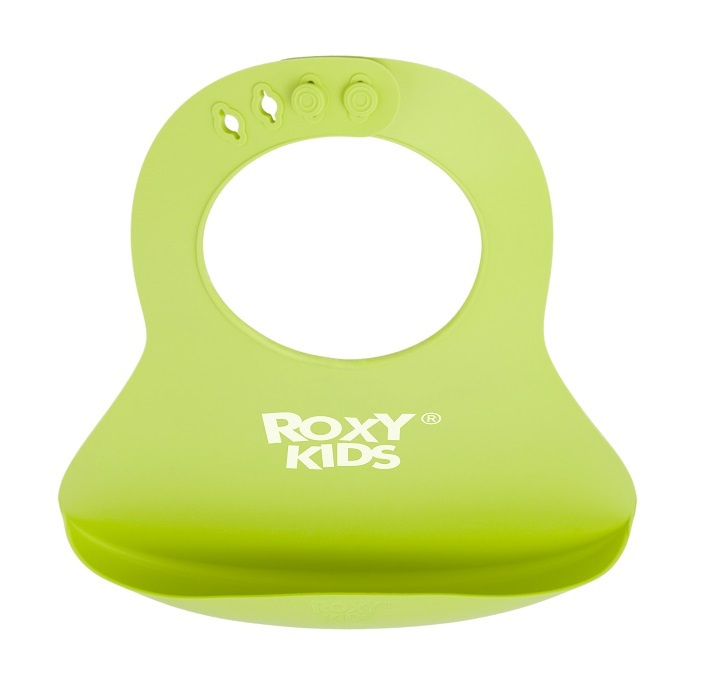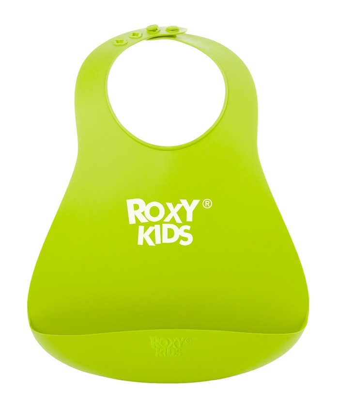 Слюнявчик детский, нагрудник для кормления ROXY-KIDS мягкий с кармашком и застежкой, цвет зеленый