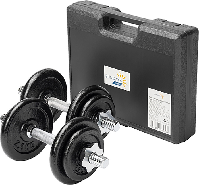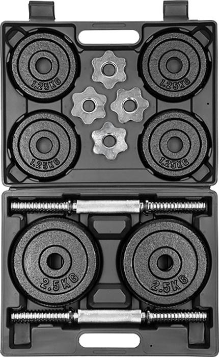 - Количество и вес дисков по 1.25 кг — 4 шт, по 2.5 кг — 4 шт