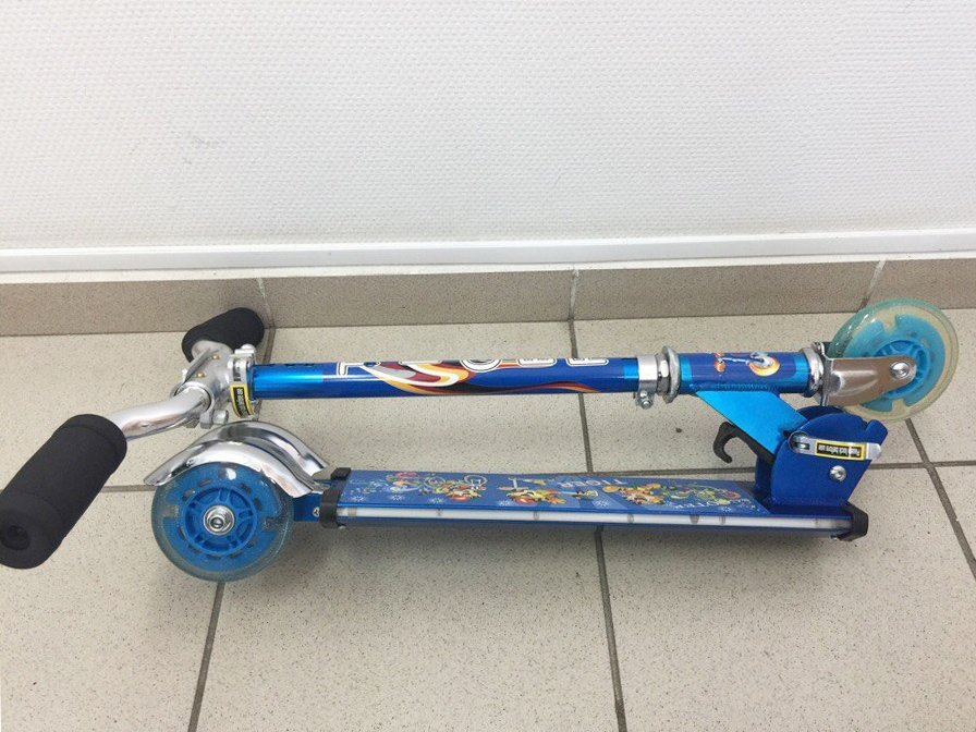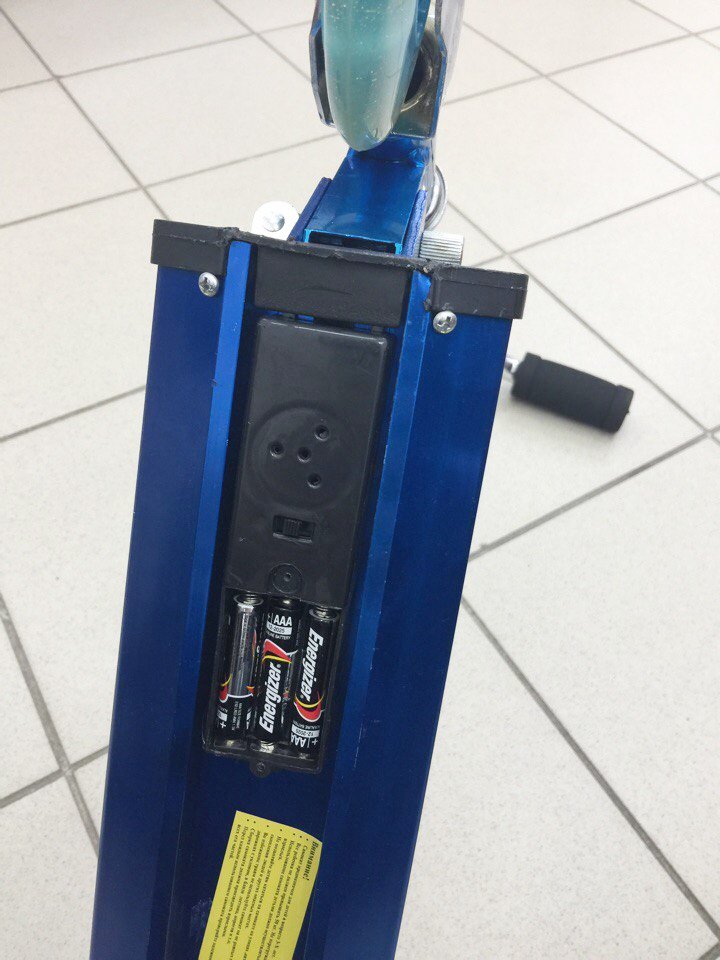 Описание-Алюминиевая рама со встроенными светодиодами и музыкой -Руль велосипедный с дополнительным зажимом -Регулируемая высота руля от 65 до 90 см -Легкая система складывания -Полиуретановые колеса со встроенными светодиодами -Размер колес: Передние: 110х20 мм Задние: 100х20 мм -Подшипники: АВЕС-5 CHROME