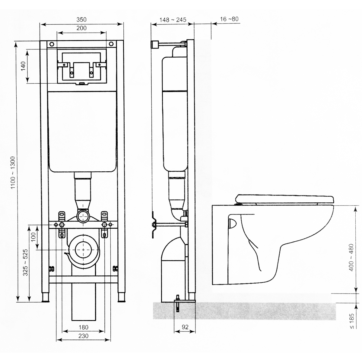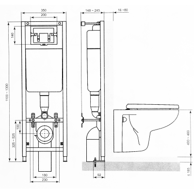 Состав комплектаИнсталляционная рама с бачком -1, панель смыва с двумя клавишами-1, комплект крепежа -1, комплект кронштейнов для крепежа к стене-1, сливная труба 90гр, диаметром 110м -1, инструкция, гарантийный талон международного образца