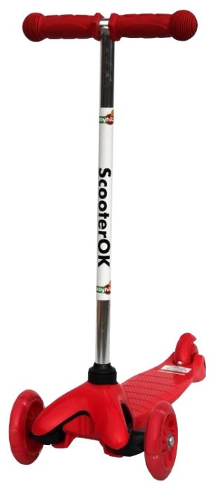 - Описание Самая младшая модель ScooterOk имеет фиксированную по высоте ручку управления (67 см), силиконовые колеса со светодиодной подсветкой и ограничение по максимальной нагрузке в 45 кг.