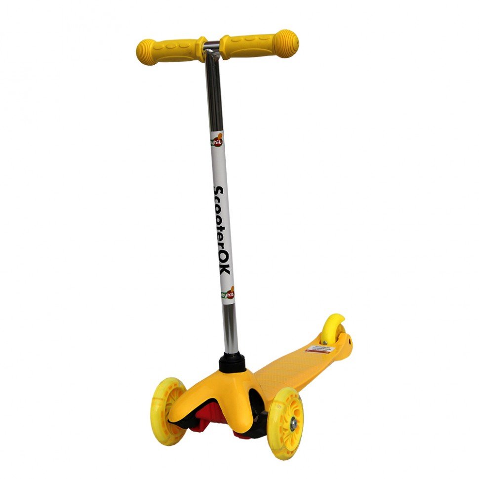 - Описание Самая младшая модель ScooterOk имеет фиксированную по высоте ручку управления (67 см), силиконовые колеса со светодиодной подсветкой и ограничение по максимальной нагрузке в 45 кг.