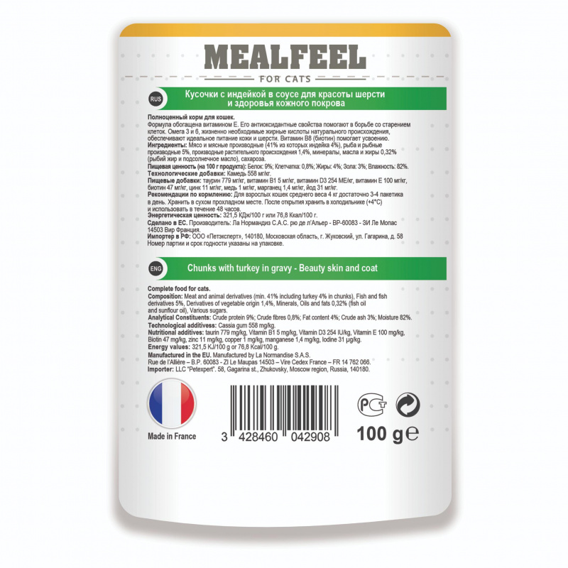Mealfeel Functional Nutrition Beauty влажный корм кошек для красоты шерсти и здоровья кожного покрова, с кусочками индейки в соусе, 100 г 100 г