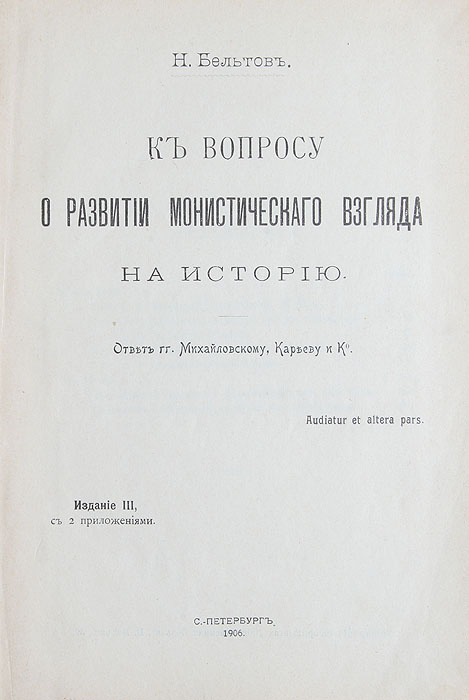 - Автор на обложке Н. Бельтов Плеханов)