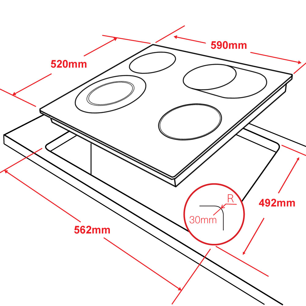 • Специальные конфорки Hi Light, двухконтурная, керамическая, с овальной зоной нагрева