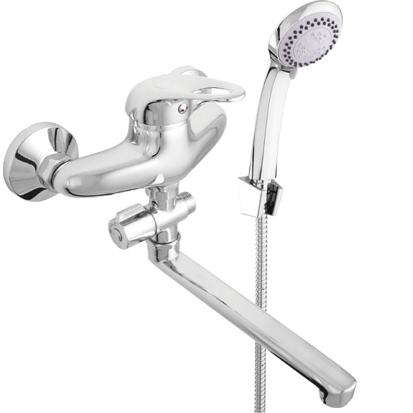 Смеситель для ванны Rubineta Prince P-12/C Star монтируется на стену в ванной комнате. Оснащен поворотным изливом размером 300 мм. Изделие выполнено из высококачественной латуни с хромированным покрытием, за счет чего является устойчивым к царапинам, известковому налету и ржавчине. Однорычажный механизм позволяет легко регулировать температуру, расход и силу потока воды. Благодаря керамическому картриджу и надежным комплектующим гарантируется исправная работа смесителя на протяжении всего срока эксплуатации. В комплекте: держатель для душа Duplex, эксцентрики с тарелочками, дивертер, душевая лейка Kobra и шланг двойной Con/Imp длиной 150 см.