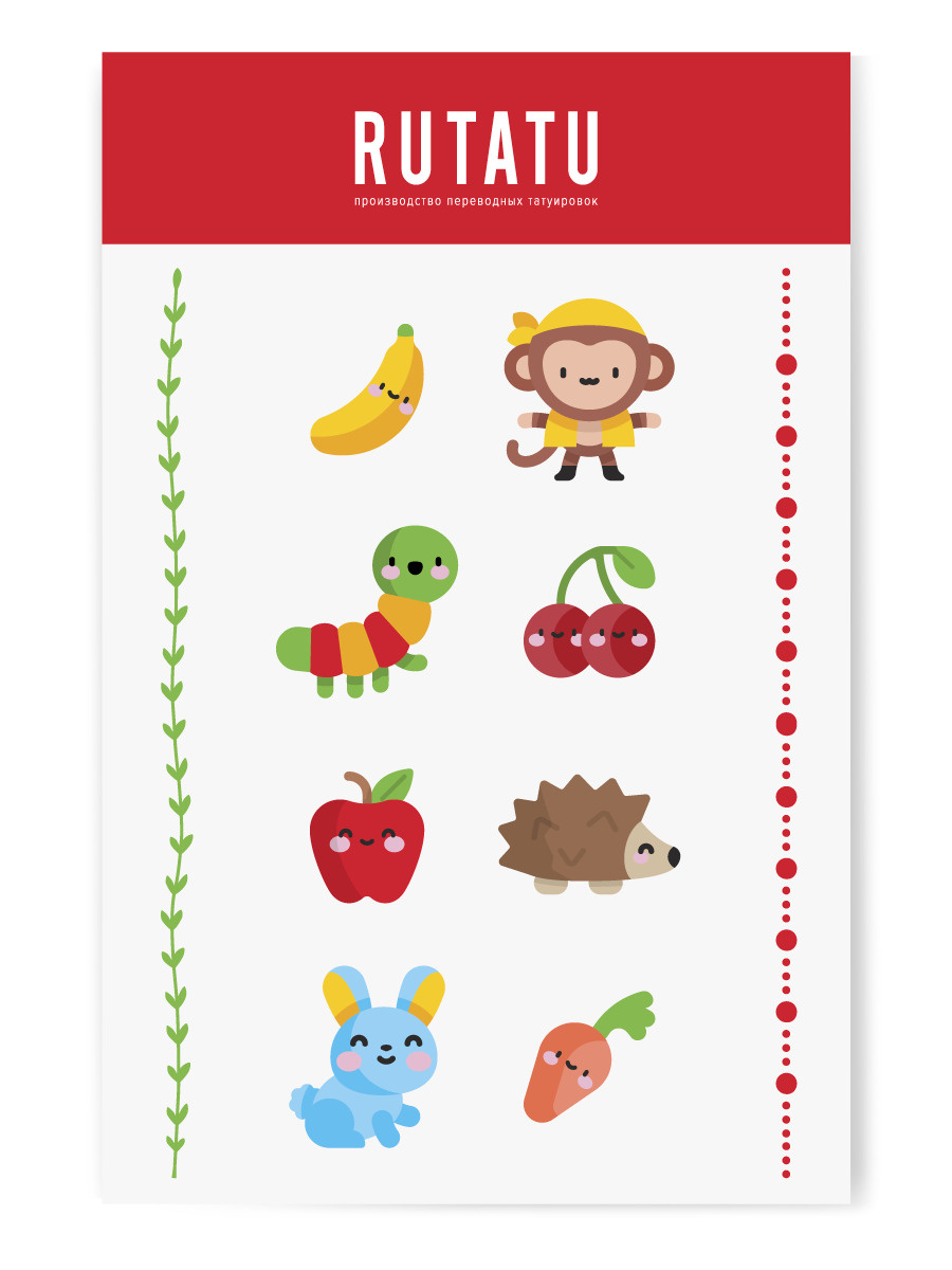 RUTATU Переводная тату Обезьянка Гусеница Ежик Зайчик для малышей