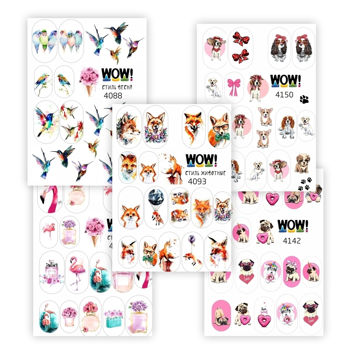 Набор слайдеров (наклеек) для ногтей (Животные, птицы, собачки, лисички. 5 шт)