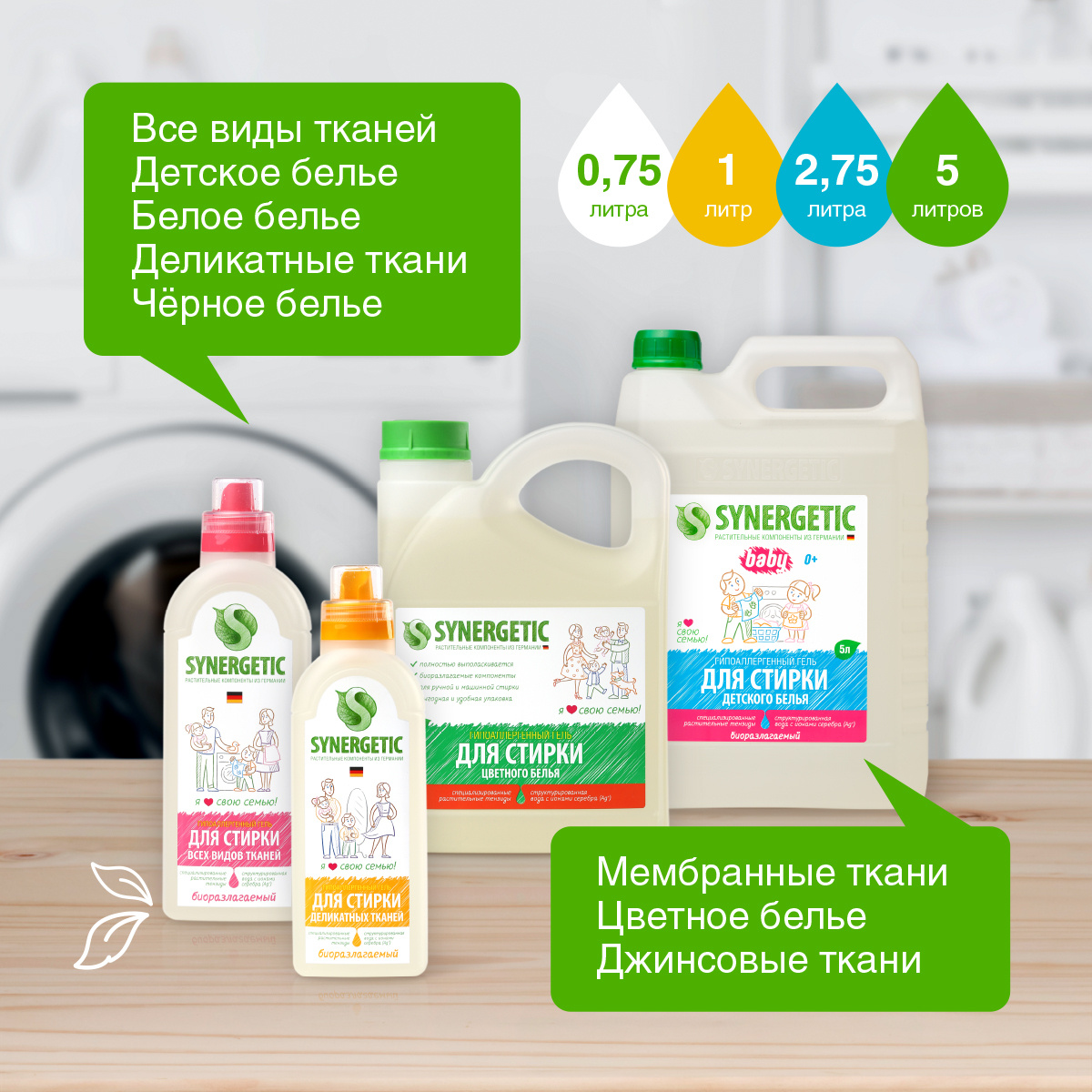 Гель для стирки черного белья SYNERGETIC, концентрат, гипоаллергенный, 2,75 л