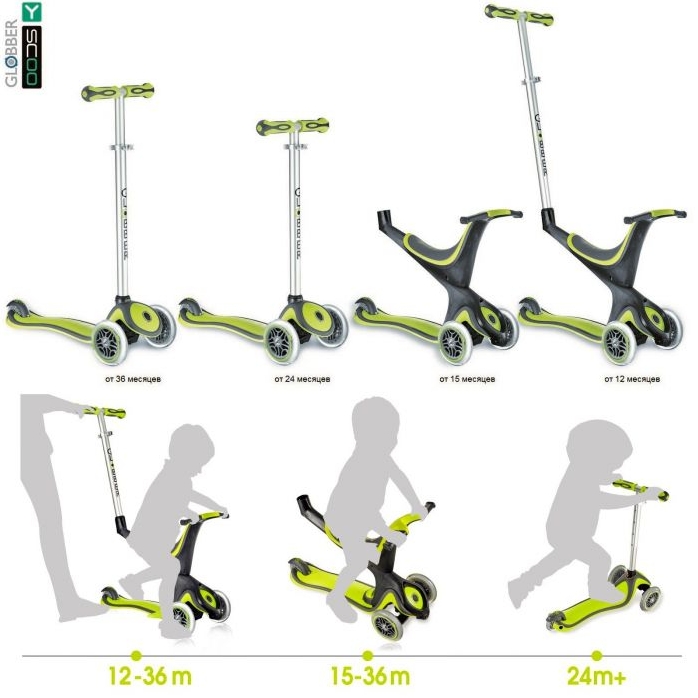ОписаниеЭто инновационный самокат, созданный с глобальным подходом к созданию самоката и идеально подходит для развития ребенка. Поэтому он и Globber. Он глобален еще в том, что растет вместе с Вашим ребенком от 1 года до 6 лет. Каталка-самокат-трансформер Globber My free Seat 5 in 1 имеет 5 этапов трансформации: каталка с сиденьем, с подножками и родительской ручкой для детей от 12 месяцев, каталка с сиденьем и родительской ручкой для детей от 12 месяцев, каталка без родительской ручки для детей от 15 месяцев, самокат с низкой ручкой для детей от 24 месяцев, самокат с высоким рулем для детей от 36 месяцев. Новая концепция в дизайне 3-х колесного самоката.