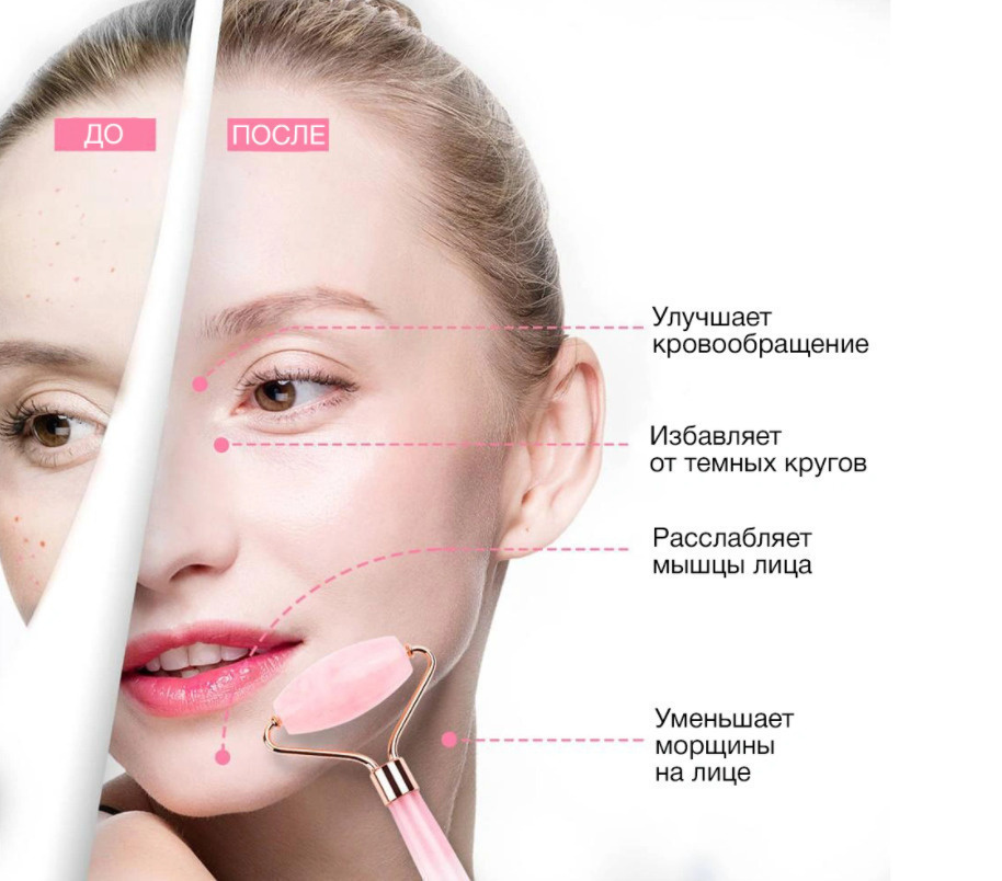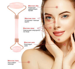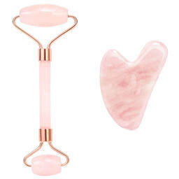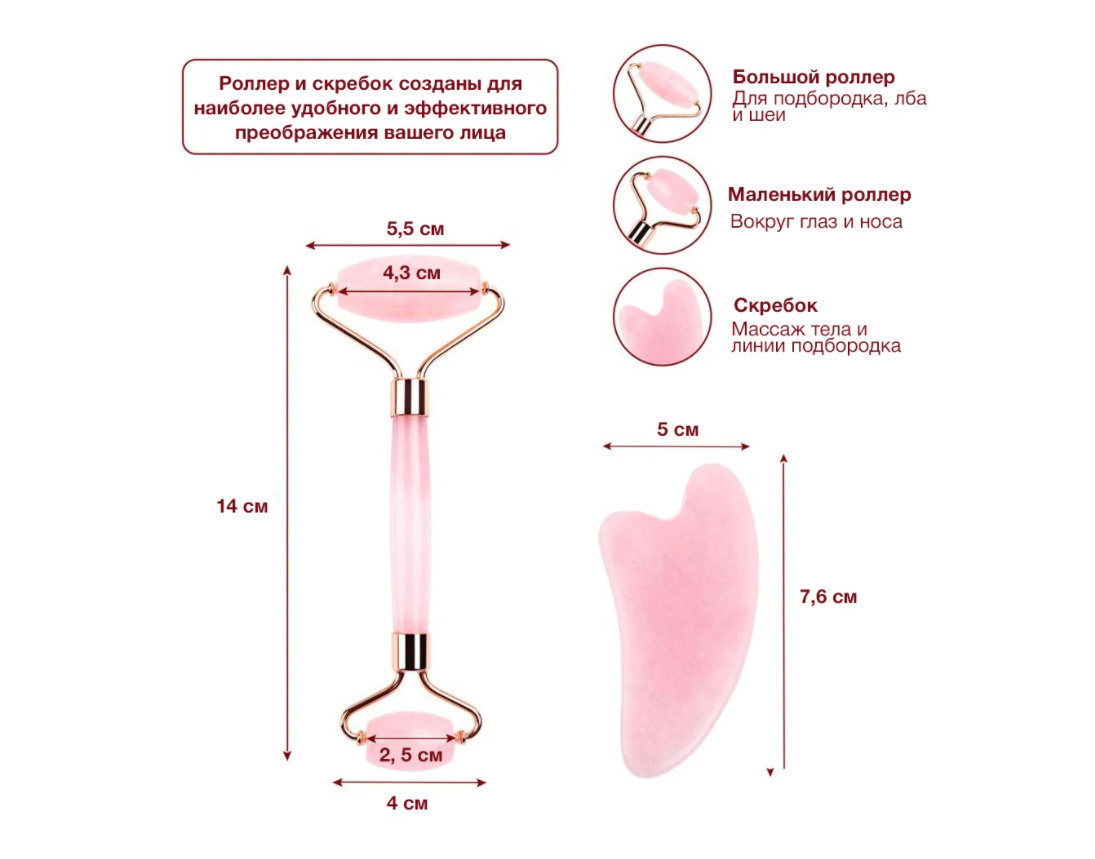 Smarter Набор массажный роллер + скребок гуаша из натурального розового кварца, Smarter