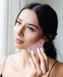 Премиальный Скребок Гуаша из розового кварца для массажа лица и тела. Камень гауша из 100% натурального природного розового кварца. Инструмент для очищающего массажа, спа-акупунктурной терапии на лице, спине, руках, шее, плечах (розовый) / Spa Natura