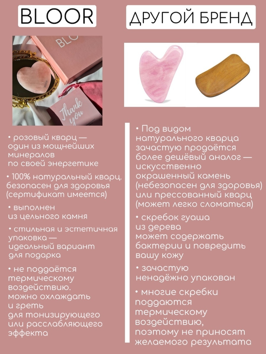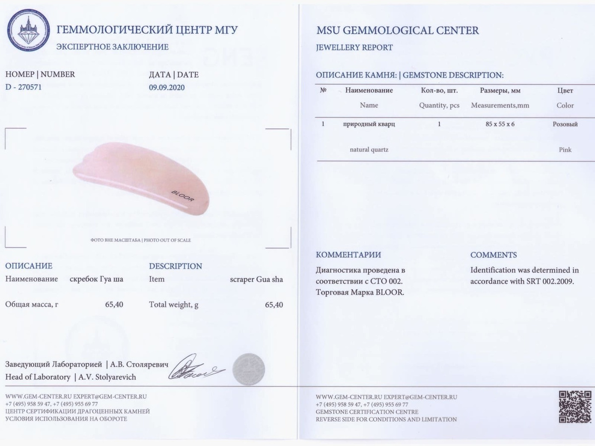 Премиум Скребок гуаша для массажа лица из цельного 100% розового кварца "Лапа" BLOOR