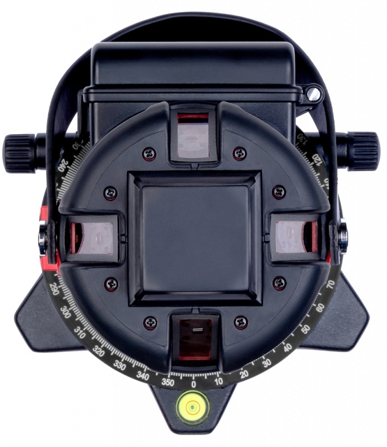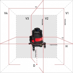 Единственный прибор с поворотным основанием и комбинированной разверткой лазерных лучей: круговая горизонтальная плоскость 360°, лазерный отвес (точка), а также перпендикулярные вертикальные плоскости