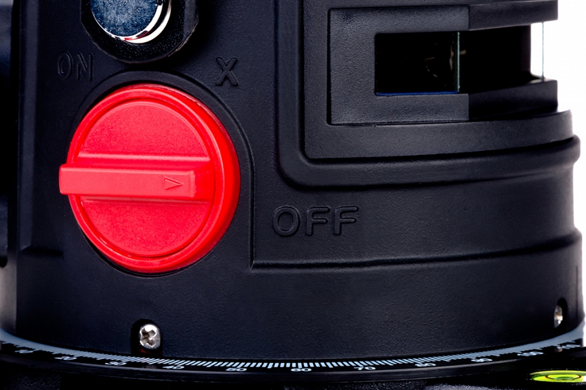 В промежуточном положении переключателя блокировки маятник заблокирован, а лазерные лучи можно включать. Это полезно при установке лестниц или разметке плитки и декора под углом к горизонту