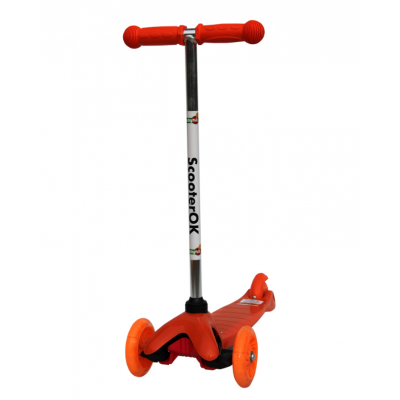 - Описание Самая младшая модель ScooterOk имеет фиксированную по высоте ручку управления (67 см), силиконовые колеса со светодиодной подсветкой и ограничение по максимальной нагрузке в 45 кг.