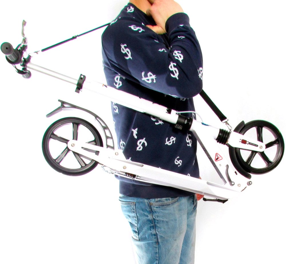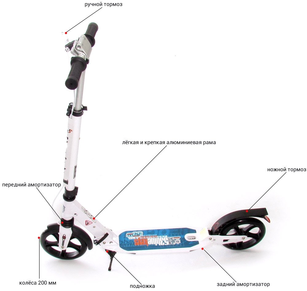 ОписаниеСерия самокатов Scooter RS 200 S создана специально для комфортного и быстрого передвижения по городским улицам. Благодаря 200 -миллиметровым колёсам самокаты S 200, быстро развивают большую скорость и позволяют без проблем проехать по самым грубым городским покрытиям, а лёгкая и крепкая алюминиевая рама делает эти самокаты манёвренными и удобными в управлении.Самокат оснащён ручным и ножным тормозом, двумя амортизаторами, изготовленными по специальной технологии Soft Road для мягкого хода.Подходит как для взрослых так и для детей.Надёжный ручной тормоз
