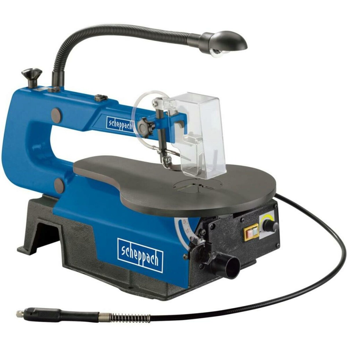 Лобзиковый станок Scheppach deco-flex - в еликолепный выбор в профессиональной распиловке дерева, гипса, пластика, метала и других материалов. Малогабаритный станок deco flex изготовлен немецкой фирмой Scheppach, имеет прочную конструкцию исключающую деформацию и сделан из прочных материалов. Рама с увеличенным вылетом, позволяет пилить заготовки продольно, поперечно и наклонном до 45°. Для более точной настройки угла наклона, на станке предусмотрена точная шкала и подсветка. Так же лобзик может, плавно регулировать скорость распила в пределах 550 — 1650 об/мин, предоставляя возможность пилить различные материалы.