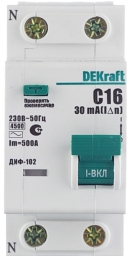 Автомат дифференциальный 1P+N, 16А, тип АC, 30мА, 4,5кА, Dekraft ДИФ-102