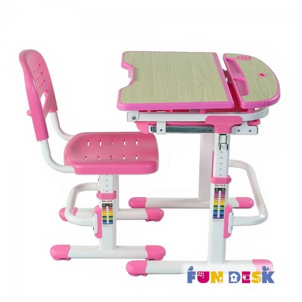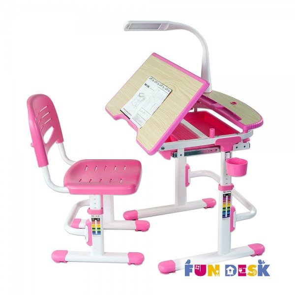 Парта-трансформер FunDesk SORRISO Pink со стульчиком (Sorriso Pink) + Детская настольная лампа FunDesk (L1)