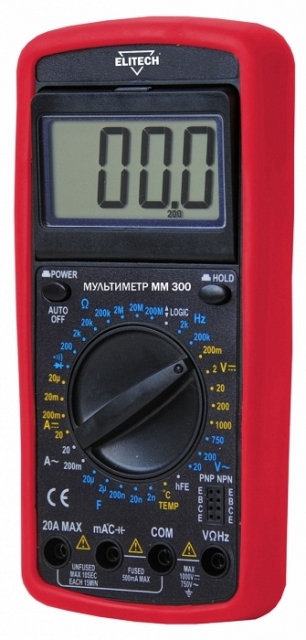 Мультиметр ELITECH ММ 300 - предназначен для измерения тока, напряжения, сопротивления, а также частоты и температуры. Прибор многофункционален, портативен, удобен при ремонте электрооборудования автомобиля, лабораторных измерений и т.д