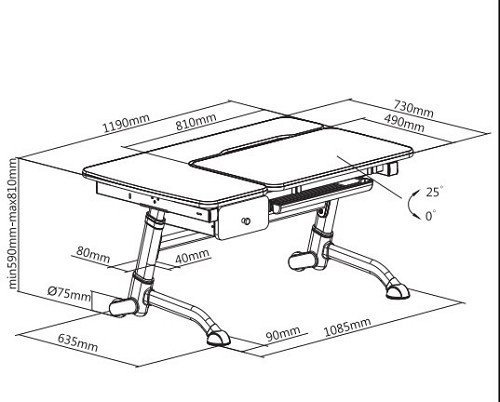 • Размер стола (ВхШхД), см 94,5-116,5х73х119