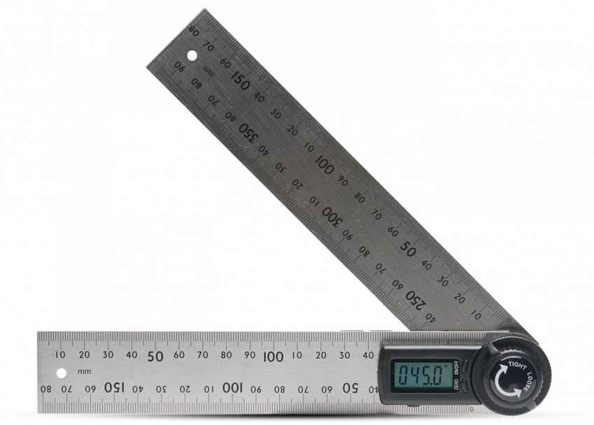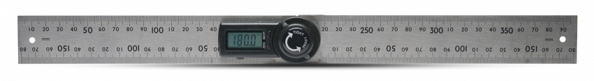 Плечи угломера при выставлении в одну линию (раскрытии на 180°) образуют обычную линейку для измерения расстояний