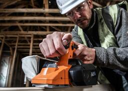 Автономный инструмент пользуется спросом и в быту, и на предприятиях. Аккумуляторный рубанок AEG BHO18-0 незаменим в деревообрабатывающих и мебельных цехах. Благодаря батарее напряжением 18В можно работать даже на улице и не беспокоиться о длине кабеля. Основная и дополнительная рукоятки позволяют равномерно распределять нагрузку на подошву для точного снятия древесного слоя. Прорезиненная поверхность улучшает сцепление с рукой, обладая антискользящими свойствами.