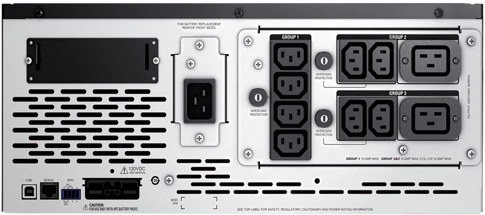 ИБП APC Smart-UPS X 3000VA Rack/Tower LCD 200-240V (SMX3000HV); Тип: ИБП; Тип ИБП: интерактивный (Line-Interactive); Эффективная мощность: 2700 Вт; Номинальное входное напряжение: 140;280 В; Номинальное выходное напряжение: 230;230 В; Макс. время работы (100% нагрузки): 6.3 мин; Общее кол-во розеток: 10; Типы выходных разъемов: IEC-320-C20, IEC-320-C14; Безопасность: защита от перегрузки, защита от короткого замыкания; Макс. время перезарядки батареи: 3 ч