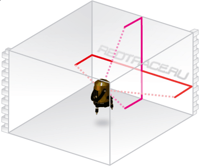 Способен отстраивать горизонтальную и вертикальную плоскости, располагающиеся под углом 90 градусов